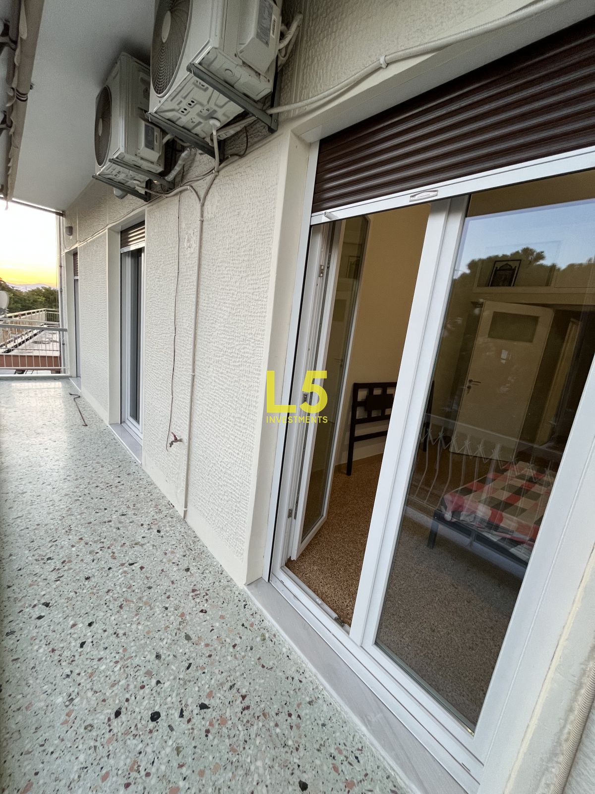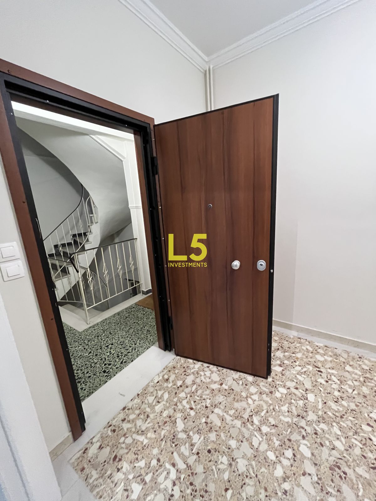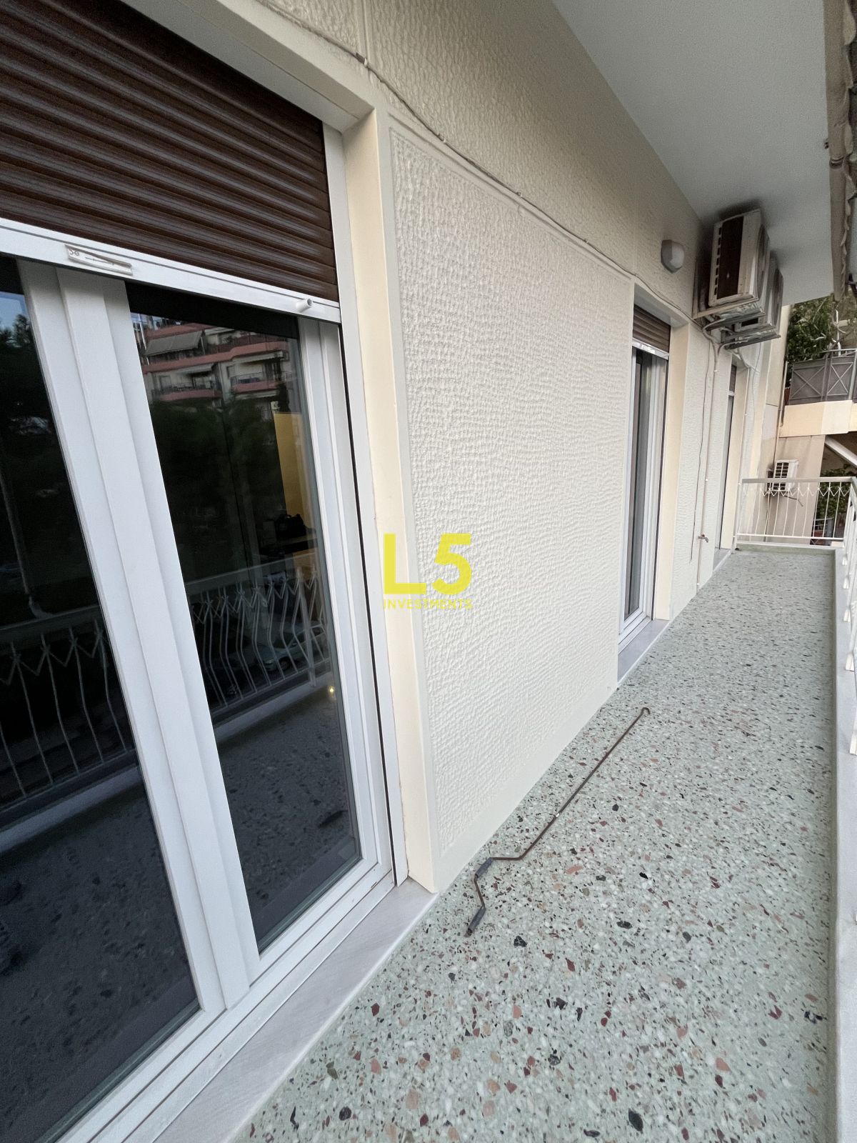 Διαθέτει κουφώματα συνθετικά με διπλά τζάμια. Στα μπαλκόνια του υπάρχουν τέντες και βλέπει σε πλατεία. Τα δάπεδα είναι από μωσαϊκό.