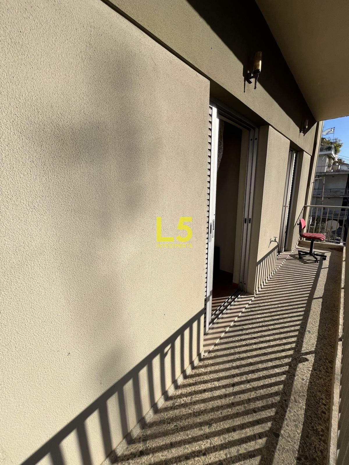 Διαθέτει κουφώματα αλουμινίου. Τα δάπεδα είναι από μάρμαρο και ξύλο.