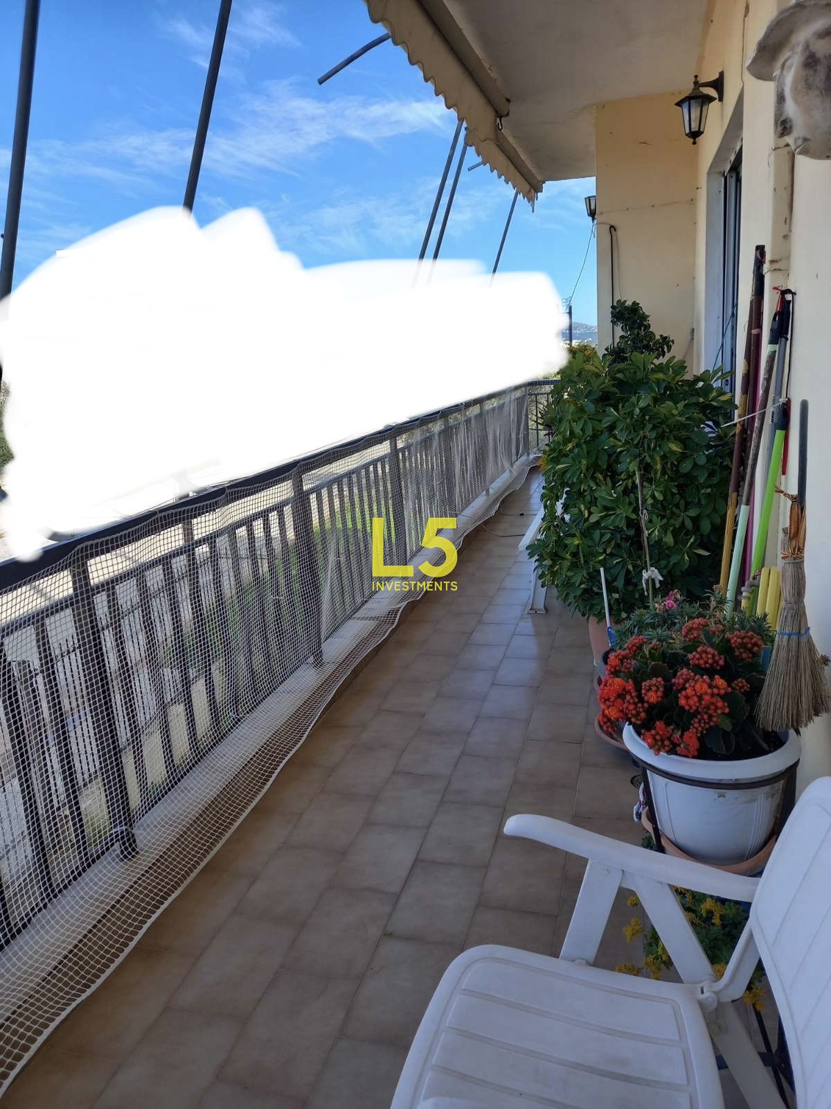Διαθέτει κουφώματα αλουμινίου. Τα δάπεδα είναι από μάρμαρο και ξύλο.